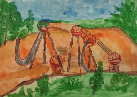 Я люблю гулять на этой площадке, потому что мне там весело. Меня покорили эти высокие космические шары. Я очень весело качусь с высокой горки. А зимой это место похоже на инопланетную станцию.