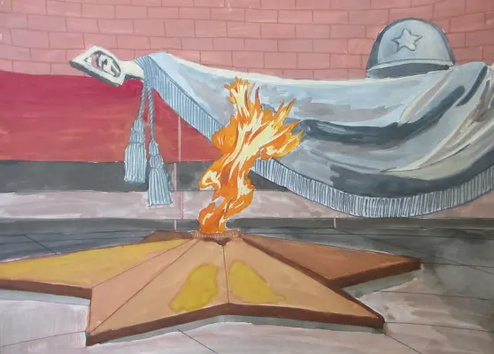 Работа выполнена после посещения Красной площади и Александровского сада вместе с родителями и изучения подвига наших солдат во время Великой Отечественной войны. Работа выполнена на бумаге А3 красками гуашь.