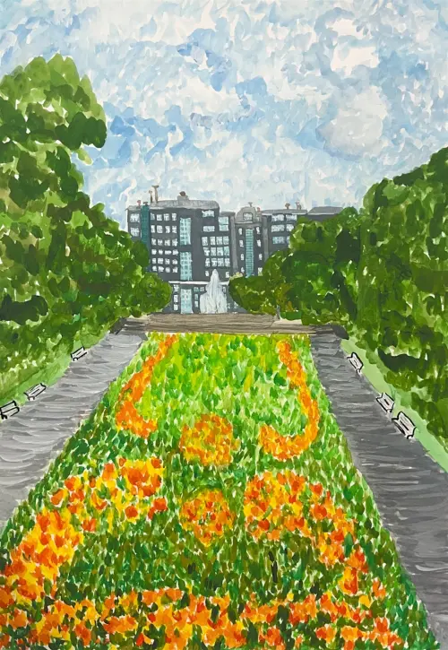 Летом сквер очень красивый! Много цветов и зелени.