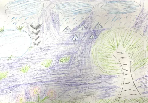 на полянах меж стволов.