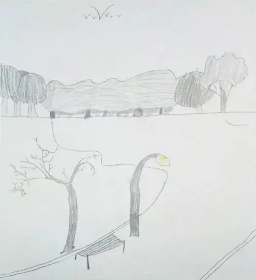 На картине изображен осенний Измайловский парк, некоторые деревья уже стоят без листвы, а птицы сбившись в стаи улетают на юг.