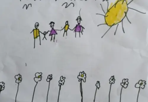 Я нарисовал эту картину, вдохновившись видом из окна. Уговорил маму и папу пойти со мной гулять. Мы отлично провели время. Погода стояла чудесная. На улице светило солнце и щебетали птицы. Но потом все-таки пошел дождь и мы отправились домой.