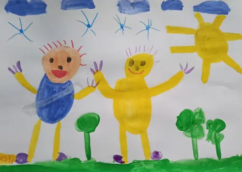 В этом году наконец-то пришло лето и жарко. Светит солнце каждый день. Мне нравится гулять с папой и мамой в парке Царицыно, там много деревьев по которым бегают белочки, а также там летают бабочки. На рисунке изображено как мне весело гулять в парке.