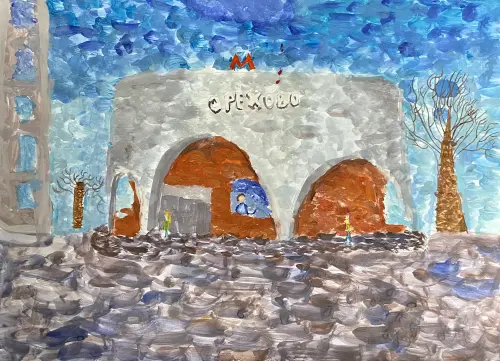 Вечер у метро ОреховоВечер у метро Орехово написано в один из вечеров у метро орехово, акварель и стиль мазкамиРабота написана в один из вечеров у метро орехово, исполльзовалась краска типа гуашь и стиль работы выполнен в стиле импрессионизм. Пожтому работа так и назыается, вечер у м. орехово