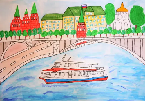 У моего города есть прекрасная набережная, обычно по ней гуляют люди, набережная раскинулась вдоль нашей реки Москва. Я люблю гулять там с мамой и папой.