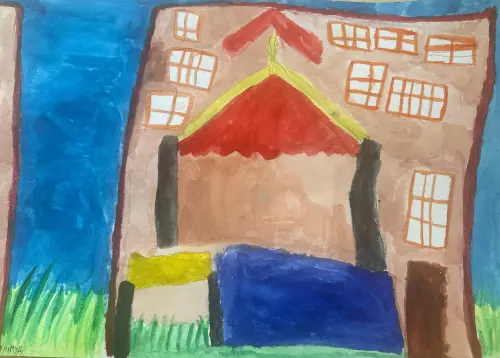 Мой любимый двор. Махмуд обожает свой зеленый двор, в котором много деревьев, кустарников и, конечно, море цветов. Любит свой невысокий дом, из которого попадает с лёгкостью на площадку и гуляет.