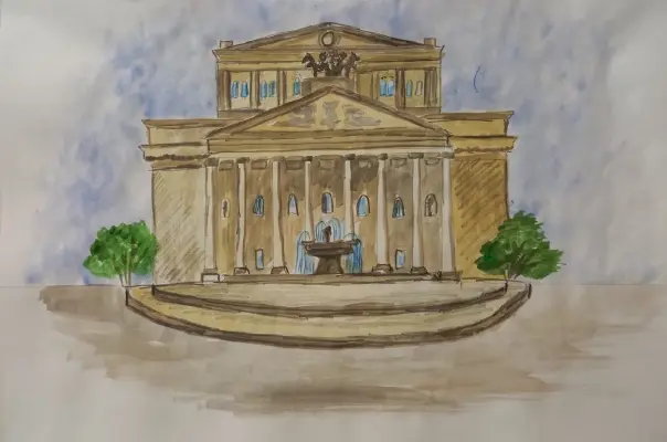 Меня зовут Полина, я проживаю в Центральном круге Москвы. Конечно, я горжусь тем, что родилась и выросла в Москве — самом красивом и современном городе нашей страны. Я люблю гулять с моими друзьями, после школы, по выходным мы идем в различные «мини походы» по городу и конечно ищем, что-то необычное и интересное. Меня, как и моих друзей волнуют разные тайны, и вот что я узнала о Большом театре, который был построен в далеком 1825 году: «Десятки лет на том месте, где стоит Большой театр, люди не хотели ничего строить. Дело было в болоте, а еще – в одной страшной легенде. Говорят, что во время чумы 1603 года именно в это болото горожане сбросили тело злодея, который прикинулся лекарем, а сам травил людей, чтобы нажиться на них. Убийцу людям выдал мальчик Никита, который единственный сумел выжить после прихода «лекаря» в его дом. Народ расправился с ним по-своему, а на том месте, куда тело сбросили, спустя два века раскинулась Театральная площадь». Мой рисунок посвящен этому зданию. Меня зовут Полина, я проживаю в Центральном округе Москвы. Я люблю гулять с моими друзьями, после школы, по выходным мы идем в различные «мини походы» по городу и конечно ищем, что-то необычное и интересное. Меня, как и моих друзей волнуют разные тайны, и вот что я узнала о Большом театре, который был построен в далеком 1825 году: «Десятки лет на том месте, где стоит Большой театр, люди не хотели ничего строить. Дело было в болоте, а еще – в одной страшной легенде. Говорят, что во время чумы 1603 года именно в это болото горожане сбросили тело злодея, который прикинулся лекарем, а сам травил людей, чтобы нажиться на них. Убийцу людям выдал мальчик Никита, который единственный сумел выжить после прихода «лекаря» в его дом. Народ расправился с ним по-своему, а на том месте, куда тело сбросили, спустя два века раскинулась Театральная площадь». Мой рисунок посвящен этому зданию.