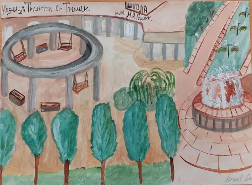 На моей картине изображена музыкальная школа имени М. И. Глинки. Там мальчики и девочки нашего города учатся играть на музыкальных инструментах, танцевать, петь и рисовать. После занятий ребята могут прогуляться по Сиреневому бульвару, который украшает фонтан «Вращающийся шар», который обозначает, что стремление к новым знаниям должно быть бесконечным, потому что город Троицк — это наукоград.На моей картине изображена музыкальная школа имени М. И. Глинки. Там мальчики и девочки нашего города учатся играть на музыкальных инструментах, танцевать, петь и рисовать. После занятий ребята могут прогуляться по Сиреневому бульвару, который украшает фонтан «Вращающийся шар», который обозначает, что стремление к новым знаниям должно быть бесконечным, потому что город Троицк — это наукоград.