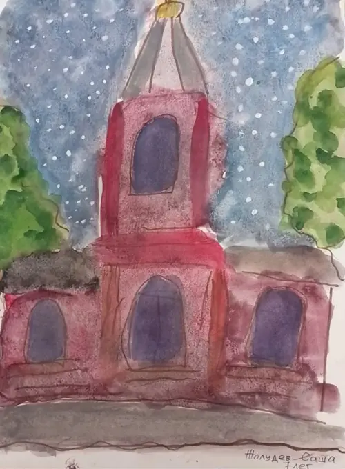 В самом центре района Восточный находится Храм Дмитрия Солунского. Мимо него я с родителями прохожу каждый день. Вокруг Храма много больших зеленых деревьев.