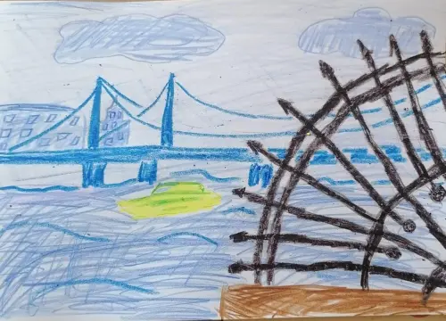 Крымский мост в Москве, через Москву-реку. Мост получил свое название в честь Крыма, символизируя связь между столицей и этим исторически значимым регионом. Мы с мамой и папой там гуляли. Ещё там проводят разные праздники.