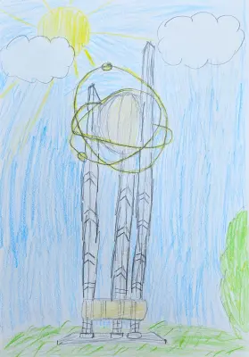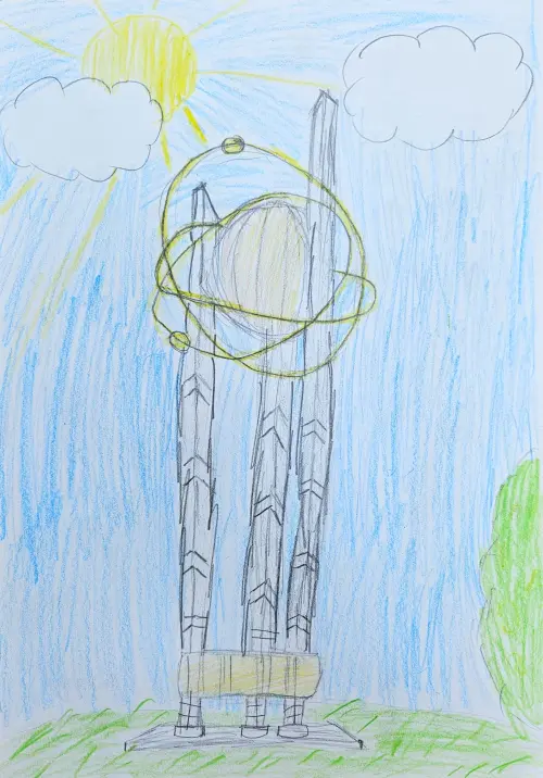 Сегодня мы с ребятами делали рисунки своих дворов и районов. Я живу в третьем микрорайоне, но часто гуляю в дендропарка и оттуда видно красивую стеллу.