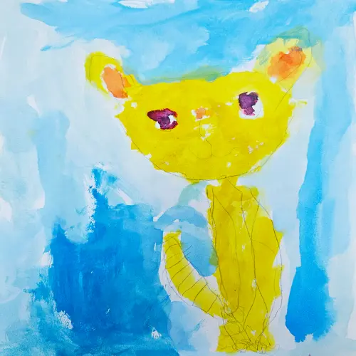 Сегодня мы с ребятами делали рисунки своих дворов и районов. Я решила изобразить своего любимого котика. Он любит гулять во дворе, на детской площадке.