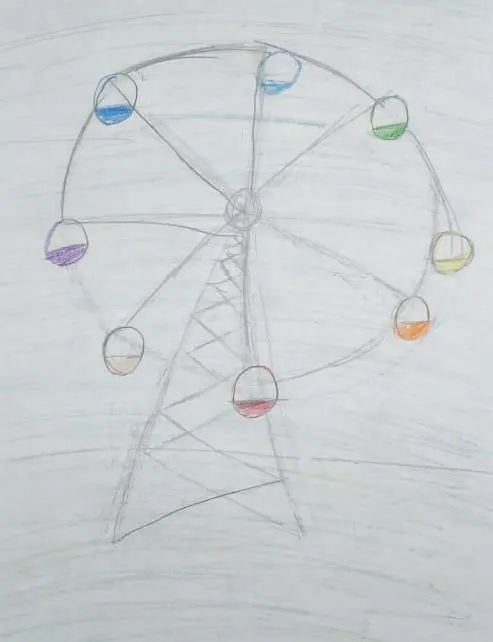 На картине изображено колесо обозрения, находящееся на территории в Измайловского Кремля, в летнее время года.