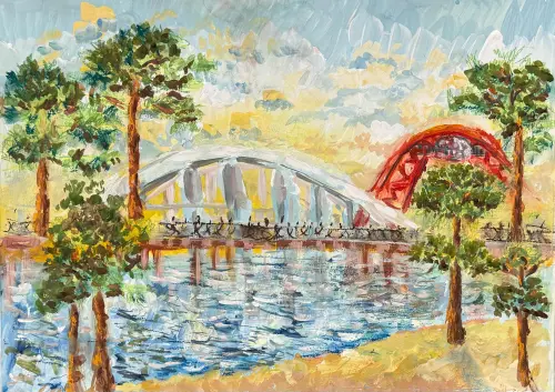 А какой замечательный вид открывается с одного песчаного берега: Живописный мост! Мы очень рады, что нам повезло жить в этом районе!