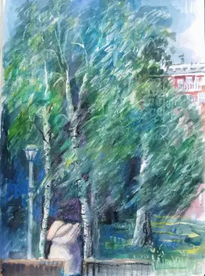 Живописный двор около библиотеки украшает мраморная скульптура, изображает книгу с пером на большом камне. Очень красивый розовый мрамор с серебристым текстом: мудрые мысли. За ним берëзы, цветник и виден красный сталинский дом. Живописный двор около библиотеки украшает мраморная скульптура, изображает книгу с пером на большом камне. Очень красивый розовый мрамор с серебристым текстом: мудрые мысли. За ним берëзы, цветник и виден красный сталинский дом.