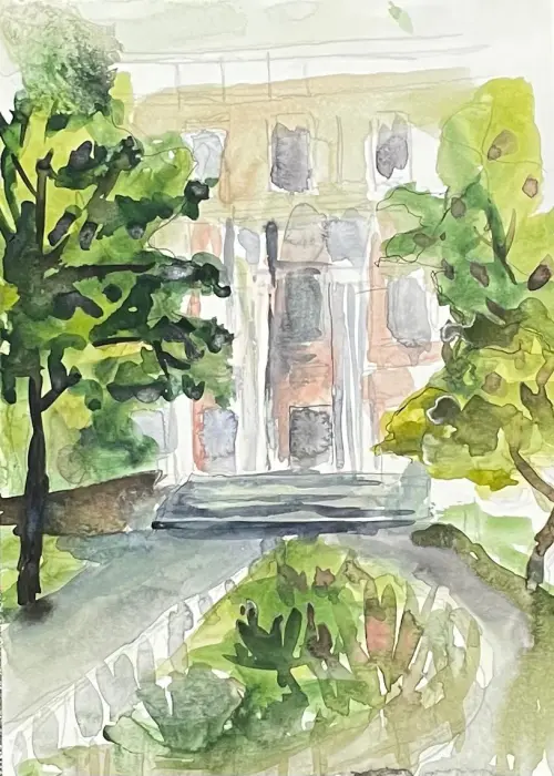 Моя работа выполнена акварельной краской.На ней изображен Дом культуры нашего района. В нем прошло мое детство. Сначало мама водила на занятия, а когда я вырос ходил сам.Моя работа выполнена акварельной краской.На ней изображен Дом культуры нашего района. В нем прошло мое детство. Сначало мама водила на занятия, а когда я вырос ходил сам.