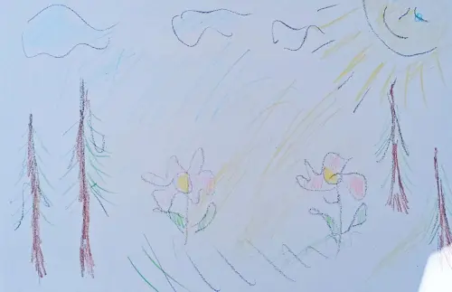 Работа выполнена цветными карандашами. Я люблю гулять. Особенно, когда на улице тепло и лето. Я нарисовала солнце, цветочки, деревья. Мой район красивый.