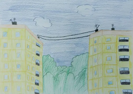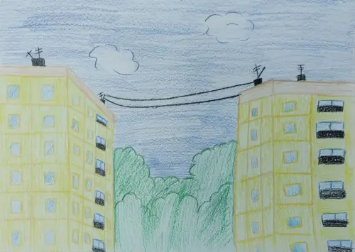 Когда смотришь в высь, на крыши домов, то кажется, что дома как живые. Общаются друг с другом по проводу. Передают какую нибудь информацию, спрашиваю6 «Как у тебя дела?». Так чудно.