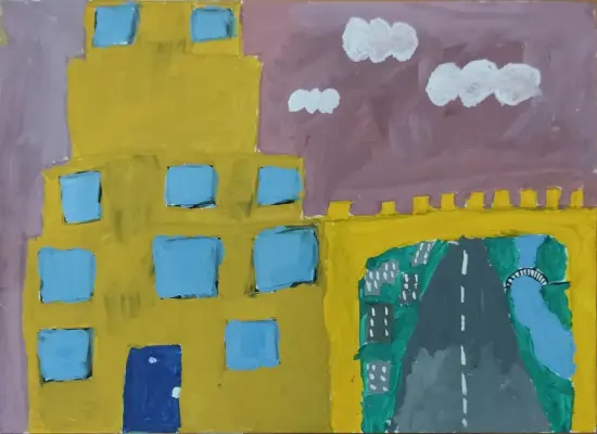 Вот он и мой район. Красивый, с большими домами. В домах большие окна, а по вечерам окна превращаются в огоньки. Все приходят домой с работы и зажигают свет. Так и светится Южное Тушино по вечерам.