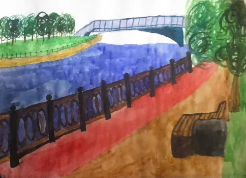Я нарисовал эту картину, потому что люблю гулять с друзьями в своем районе, кататься на велосипедах или самокатах по набережной. Мы много проводим времени катаясь, общаемся, дружим.