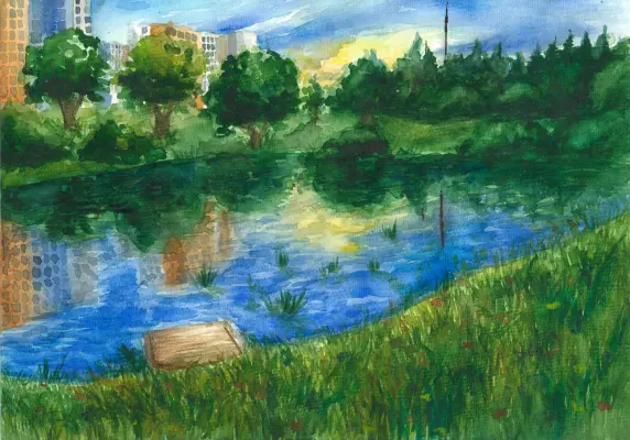 Рядом с моим домом есть прекрасный парк, с красивым озером, мы часто с друзьями любим там проводить время, играть в игры, читать книги, рисовать!!!!! Я его люблю в разные времена года.
