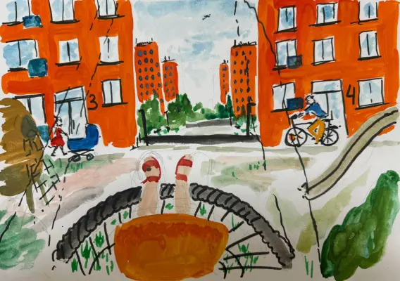 Я очень люблю свой район, в котором живу, у нас есть замечательный парк, в котором очень много разных площадок, где мы с друзьями проводим время, гуляем, читаем, рисуем.