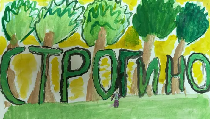 Строгино — мой самый любимый и родной район. На рисунке изображено одно из моих самых любимых мест — название моего района на улице Маршала Катукова. Эти яркие большие буквы придают уюта и делают Строгино особенным.