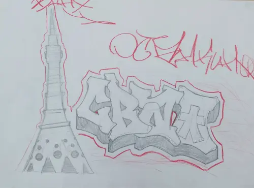 Изображение Останкинской телебашни в стиле стрит-арт. Такое изображение может украсить огромное уличное пространство, серый забор или технические постройки.