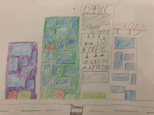 Мой любимый двор, в нашем доме очень много развлечений и кафе. Мы ходим туда есть пиццу и мороженое. А еще хожу в бассейн тоже рядом с домом, мне очень нравится.
