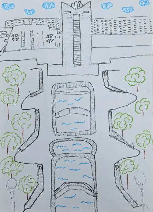Сегодня нам с ребятами предложили нарисовать одно из мест нашего прекрасного города. Я вспомнила как гуляла по парку Победы. Мне очень нравится это место.
