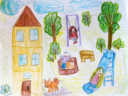 Я люблю гулять со своими друзьями во дворе своего дома на любимой детской площадке. Мы весело проводим своё время. С собой гулять я беру нашу собаку Фоксика.Я люблю гулять со своими друзьями во дворе своего дома на любимой детской площадке. Мы весело проводим своё время. С собой гулять я беру нашу собаку Фоксика.