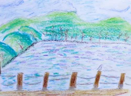 На своей работе я изобразила Терлецкий парк. Я занимаюсь в изостудии и мы в хорошую погоду рисуем природу нашего района. Я рисовала масляной пастелью.