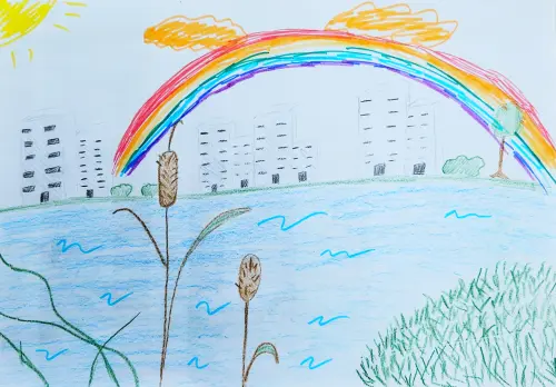 Сегодня нам с ребятами предложили нарисовать одно из мест нашего прекрасного города. Я вспомнила, как гуляла с родителями и наслаждалась Михайловским прудом.