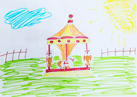 Сегодня нам с ребятами предложили нарисовать одно из мест нашего прекрасного города. Я вспомнила, как гуляла с родителями по площади Юности и каталась на карусели.