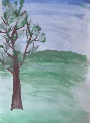 На рисунке изображен вековой дуб, стоящий в парке «Коломенское». Он величественный и могучий, с толстым, потрескавшимся стволом, на котором видны следы времени. Рисунок передает не только внешний вид дерева, но и его внутреннюю силу.