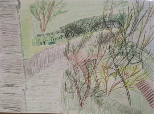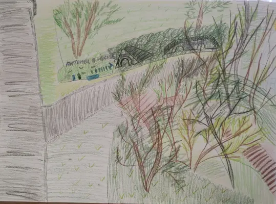 Вдоль Садковского оврага, под пение птиц и шум листвы. Можно опуститься по прикольной, как винтовая лестница, вниз в овраг. И пройтись по дорожке -покрытию, а собачка по земельке на длинном поводке, очень довольная. А деревья в овраге ещё выше кажутся. Очень прохладно в жаркую погоду. Поднимаешься с другой стороны по лестнице и вот, радость для собак, новая площадка собачья. Интересно так, на всём оборудовании так и написано: