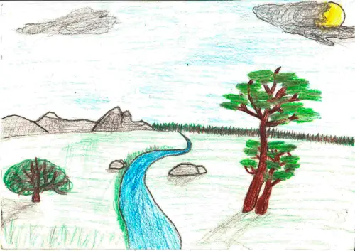Люблю бывать на реке Волчок, которая протекает у нас в деревне. Там я ловлю рыбу, загораю, купаюсь, играю с друзьями в игры. Рядом с рекой находятся поля с цветущим клевером.