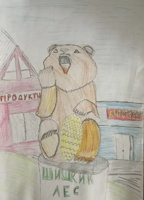 Моя работа посвящена символу нашего поселения — царю леса Медведю! Медведь символизирует мощь, величие, смелость, отвагу, решимость, мужество. Все это описание жителей нашего поселения!