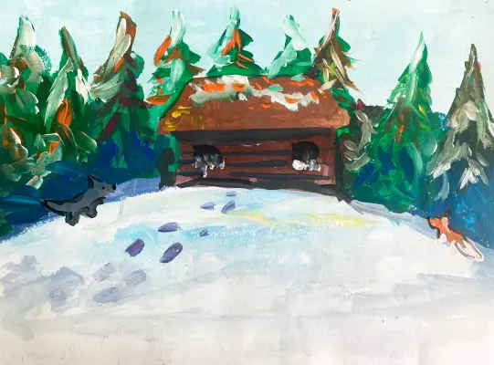 Я очень люблю русские народные сказки. Я их читаю сама. Зимой наш лес похож на сказочный и мне захотелось его нарисовать. Я очень люблю природу и лесных жителей.