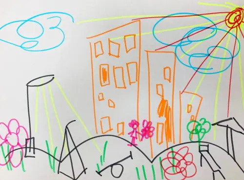 Это мой двор, в котором я люблю играть с друзьями. Там много деревьев, за которыми я прячусь, когда с друзьями играем в прятки. Там есть качели, на которых я люблю качаться.