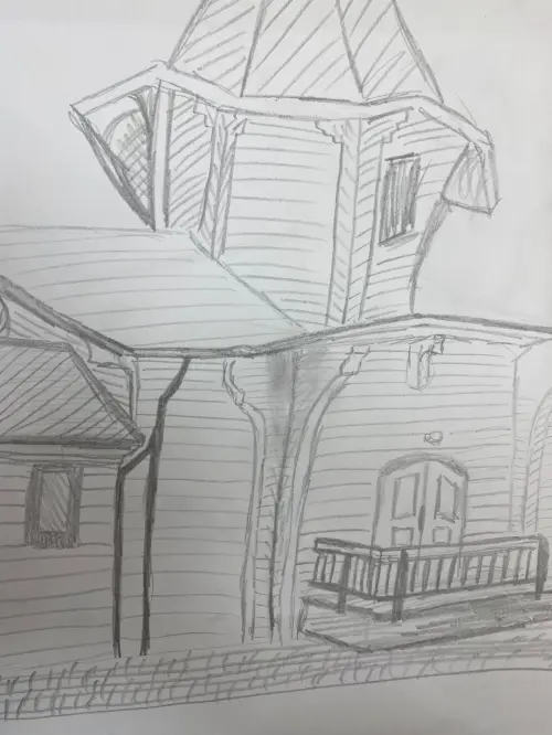 Моя работа выполнена графическим карандашом.Я изобразил Церковь Лууки архиепископа Крымского.Он находится на пересечение Верхних полей и Цимлянской.Сейчас вместо деревянного храма отстраивается большой кирпичный.