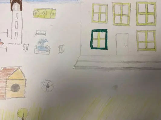Я нарисовал свой район цветными карандашами. На ней дом, будка для собачки, храм, фонтан и футбольное поле.Мой район большой и красивый. Мне нравится гулять по нему.Я нарисовал свой район цветными карандашами. На ней дом, будка для собачки, храм, фонтан и футбольное поле.Мой район большой и красивый. Мне нравится гулять по нему.