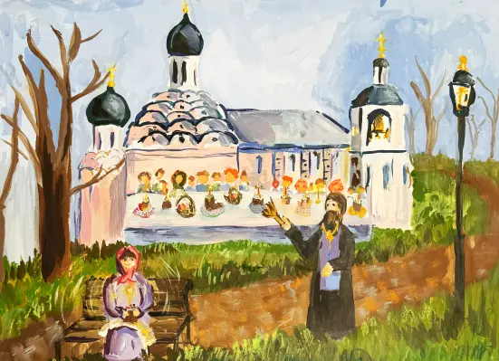 На работе изображен Храм Живоначальной Троицы в Хорошеве в Светлый праздник Пасхи. В Храме всегда царит особенная атмосфера умиротворения и божественного духа.
