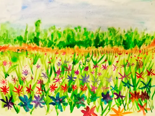 На поляне мы видели много разных цветов. Очень красивых, разных по цвету, пушистых.