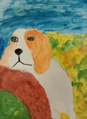 Это мой любимый Боня. Я часто гуляю с ним около дома. А сейчас мы ходим с ним на специальную собачью площадку, где я его тренирую. Очень хорошо, что у нас есть специальные площадки для тренировки собак.