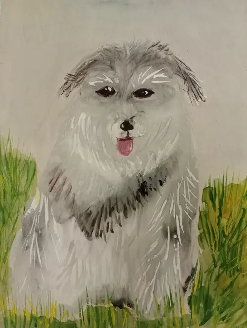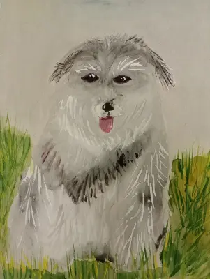 Мои родители подарили мне щенка. Сейчас он растёт. Становится пушистым и даже лохматым.