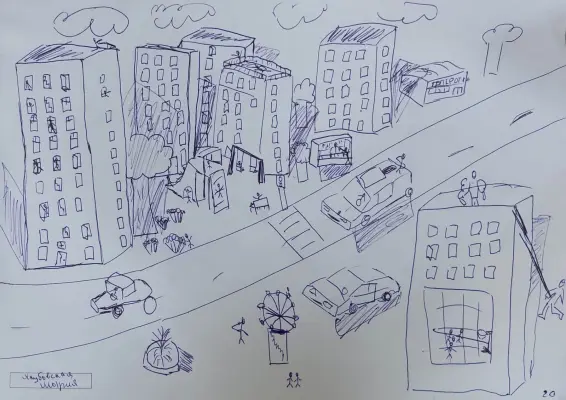 На рисунке представлен мой дом и любимая площадка, на которой провожу так много времени со своими друзьями.На рисунке представлен мой дом и любимая площадка, на которой провожу так много времени со своими друзьями.