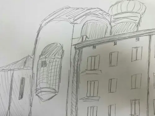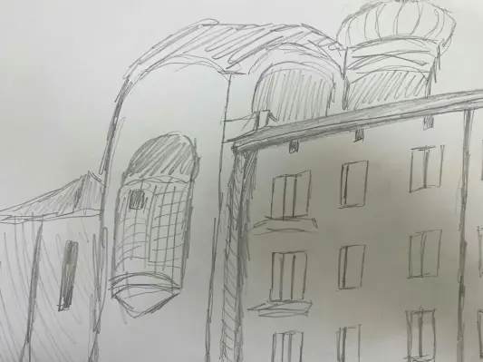 Моя работа выполнена графическим карандашом. Мне нравится, что сейчас в каждом районе есть красивые большие храмы. Мне нравится их рисовать. Поэтому я изобразил именно его.