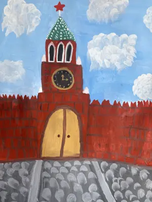 Главная достопримечательность МосквыГлавная достопримечательность Москвы. Работа была нарисована по видеоуроку преподавателя по рисованию, гуашью. Использовалась палитра для получения нужных цветов, а также разные приемы нанесения кистью, для выполнения облаков и камня.