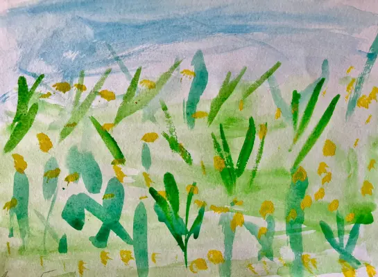 Поселок Щаповское расположен среди лесов и полей. На своём рисунке я изобразила зелёное поле, покрытое множеством цветов. Вдыхаешь свежий воздух, и аромат цветов наполняет тебя.